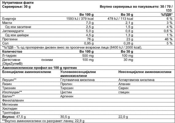 Земете 30g (1 дозерка = 1 порција) со 300ml вода. Земете 1-3 порции дневно, во зависност од вашите потреби за протеин.